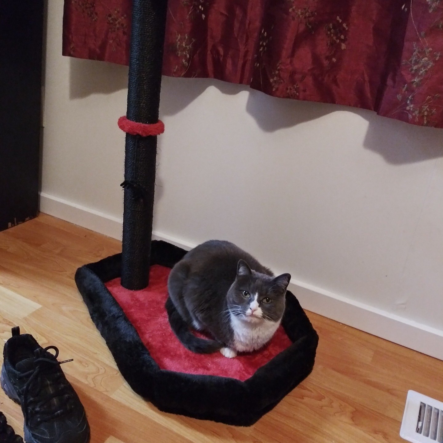 Someone got me this adorable coffin cat bed with a scratching post from my post disaster wishlist on Amazon.